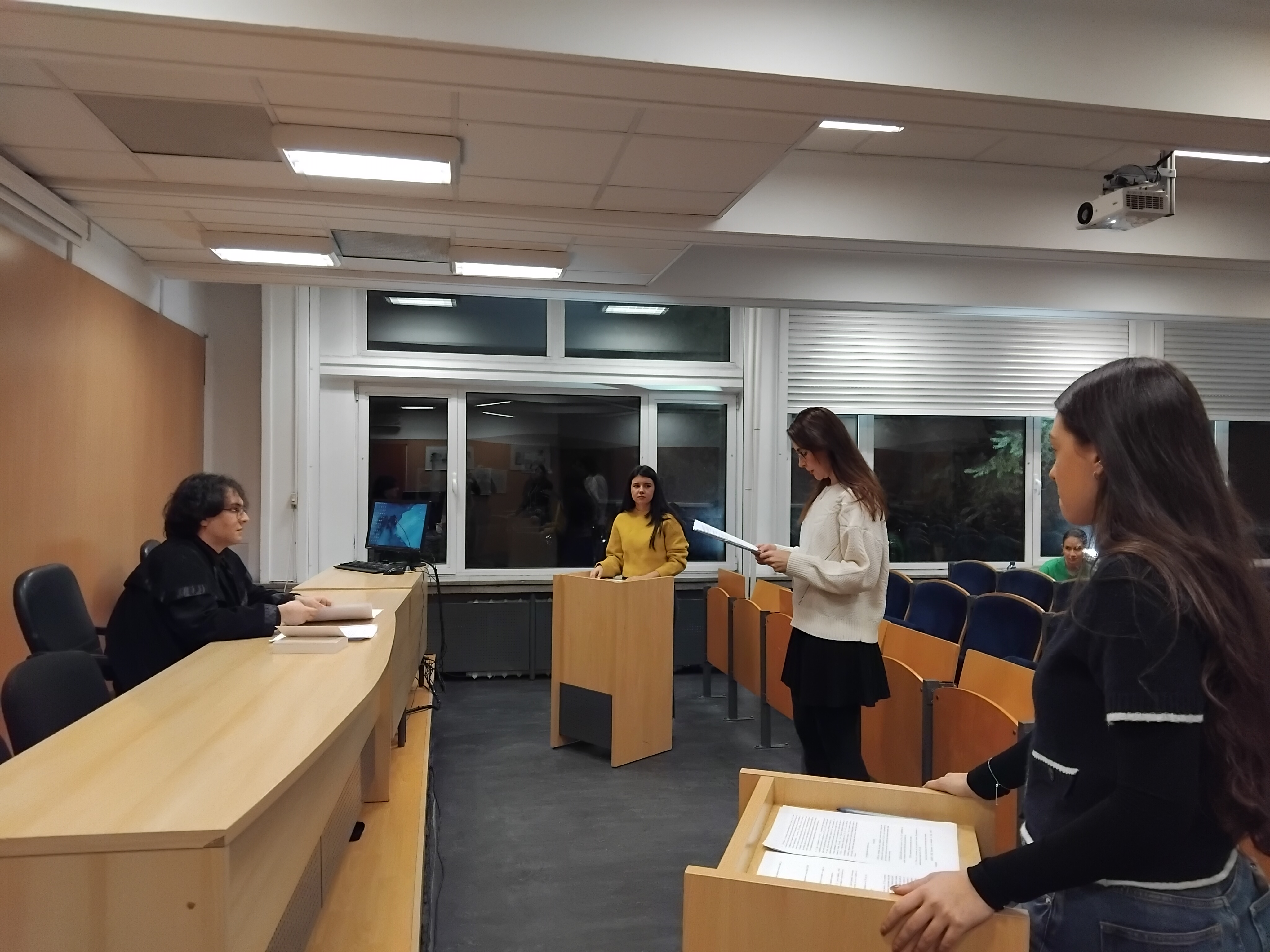 На 21 януари 2026 г., от 18.20 часа, в учебната съдебна зала на Нов български университет се проведе симулативен съдебен процес по разглеждане на трудовоправен спор, организиран от студентите от четвърти курс на специалност „Право“, доц. д.ю.н. Ивайло Стайков и гл. ас. д-р Мария Чочова, в рамките на Кръжока по трудово и осигурително право.