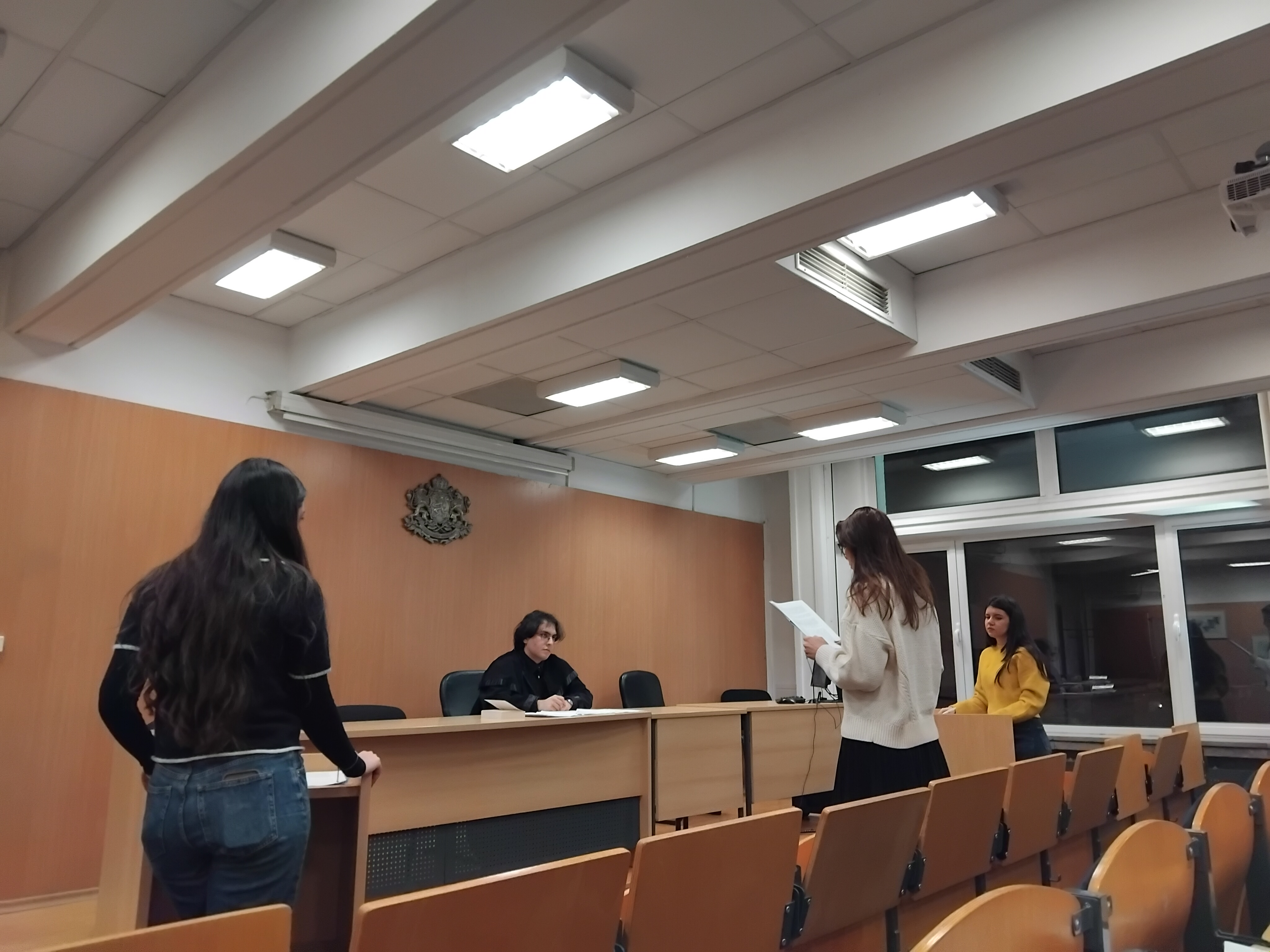 В симулитивния съдебен процес взеха участие студентите: Никол Тревненска, Александра Кирилова, Мартина Гигова, Явор Димитров, Лора Савова и Стефани Стефанова.